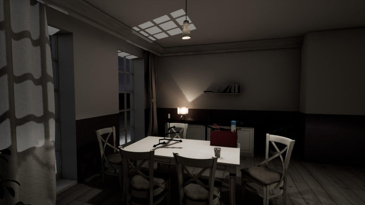 Сбежать из дома необходимо через дверь с магической руной. Однако безымянный протагонист отказывается сразу это делать, говоря, что ему нужно забрать нечто "самое нужное". Геймеру надо самому догадаться, что хочет от него главный герой. Пока он будет разбираться, что к чему, ему придется разгадывать пазлы, включать и чинить постоянно пропадающее электричество, а также убегать от незваного гостя. В инди-проекте отсутствует музыка. Есть только голоса и звуки. Снизить уровень их громкости в самой игре нельзя. Поначалу сюжет непонятный. Однако по мере прохождение всплывает новая информация, объясняющая, чем занимается протагонист и почему за ним гоняется монстр. Продукт состоит из 4 уровней.