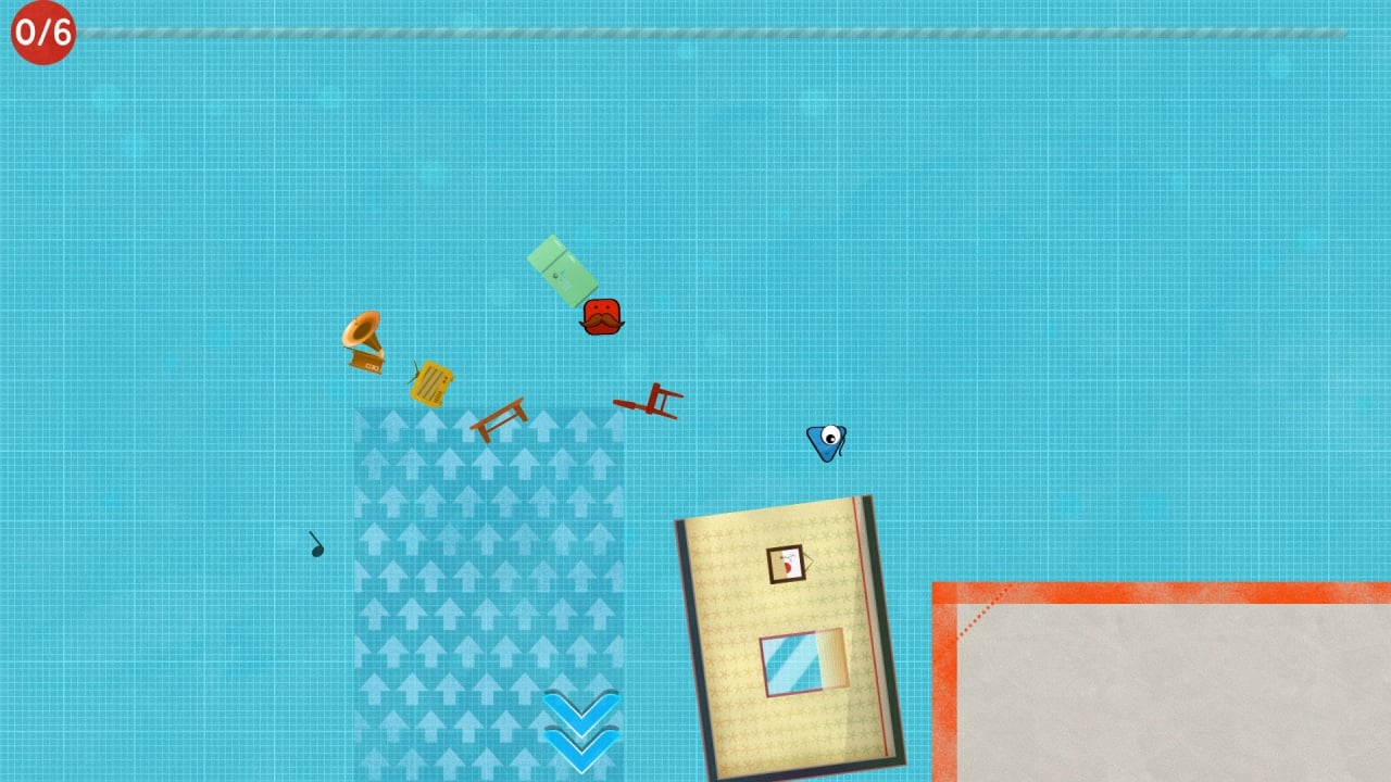 Сделать это будет непросто, так как геймер управляет именно кубическим человечком. Он может парить в воздухе и летать в любом направлении. Чтобы сдвинуть жилище в сторону, нужно толкать стены, потолок или пол изнутри. Важно делать всё так, чтобы не застрять. Квартира реалистично реагирует на толчки и перевороты (а столы и стулья летают в это время по всей комнате). Если переборщить, то вырезанный кусок дома может развалиться. В Jim is Moving Out! есть локальный кооперативный режим. В нем второй игрок контролирует треугольного парня по имени Джо. Можно играть вдвоем с одного ПК, причем товарищу даже не понадобится геймпад. Двоим хватит и клавиатуры, так как управление задействует всего 4 кнопки.