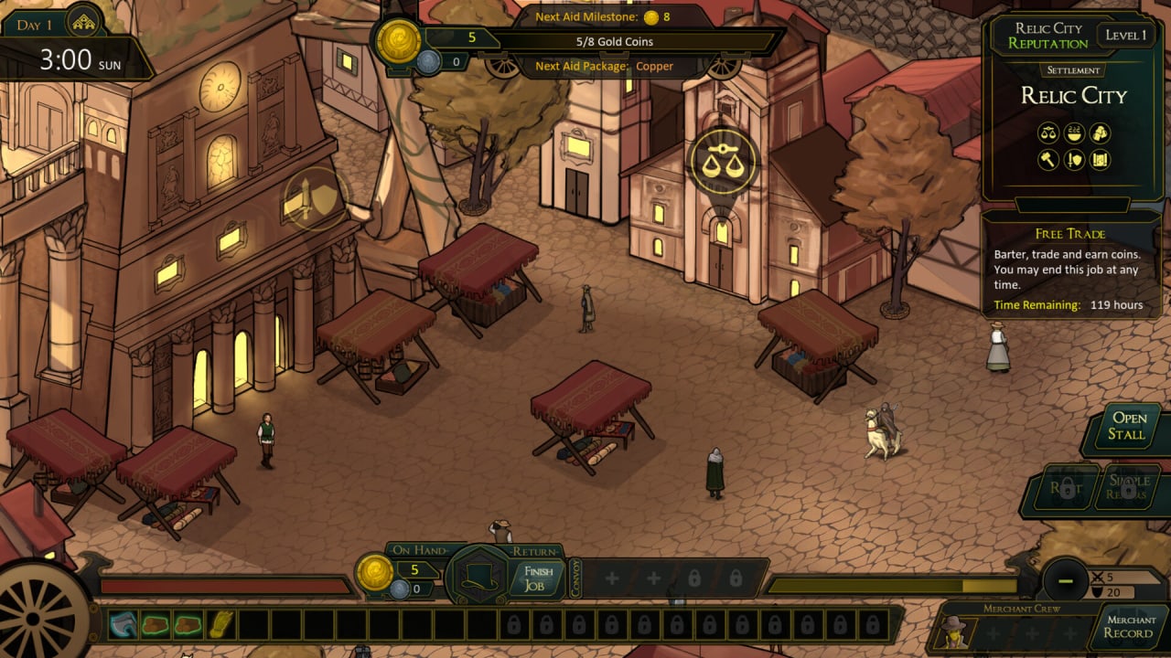 Вторым важным аспектом Ten Thousand Coins выступает система бартера. Не обязательно покупать или продавать товары. На пути встретятся харизматичные торговцы, странствующие купцы и т.д. У каждого из них есть свой инвентарь, в котором находятся важные и полезные предметы. Предложите ему обменяться вещами. Мир игры - огромный. Одна вещица, стоящая сущие копейки в одной части королевства, может озолотить вас в другой. Знание того, что предлагать торговцам в разных регионах - ключ к успешной торговле!
