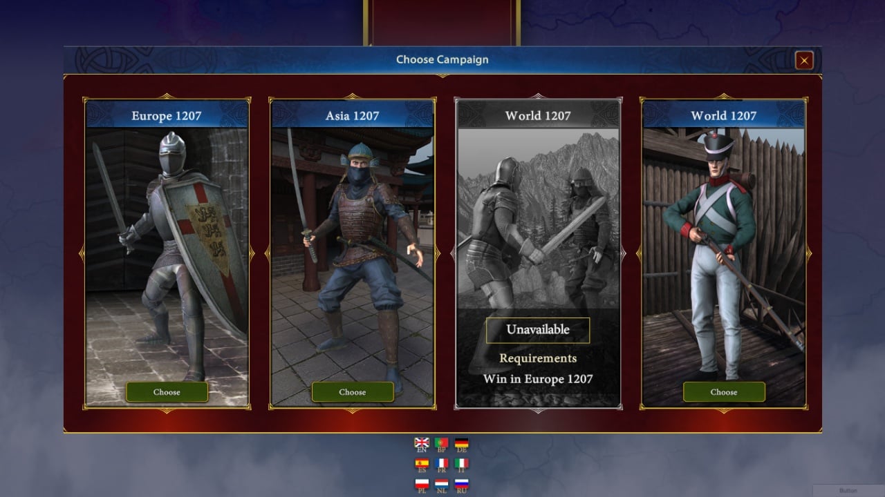 Базовая версия Generals & Rulers без сторонних модификаций обладает датой старта 1207 год нашей эры. Разработчики объяснили такой выбор тем, что в этот период одновременно было множество значимых конфликтов, таких как нападение монгольского иго и их стычки с Русью и азиатскими державами, доминирование Священной Римской Империи и её постоянные войны по нескольким фронтам одновременно, сражения на территории современной Великой Британии и тому подобное. Геймеру доступно на выбор больше 80 фракций, обладающие своими отличиями, положительными и негативными моментами, из-за чего геймплей на них ощущается по-разному. Пользователю предстоит держать в уме громадное число дел и управлять большинством механизмов собственной выбранной страны. Помимо улучшения армейской мощи, следует не забывать о вложениях в науку, развитие образования, досуга и религии. Каждый фактор может стать решающим в партии, которая длиться в среднем около 2 часов.