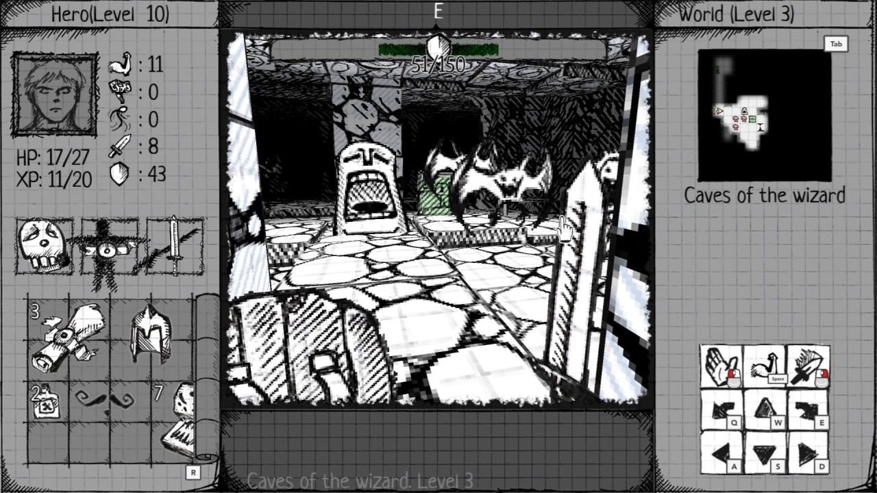 Drawngeon: Dungeons of Ink and Paper – ролевое приключение с видом от первого лица, в мире созданном в псевдотрёхмерном пространстве с двухмерными спрайтами, и с использованием графики, нарисованной от руки в двух цветах – белом и чёрном. Во многом, этот проект за авторством небольшой инди-компании, напоминает старомодные игры прошлого века, с тех времён, когда этот жанр только начинал зарождаться в игровой индустрии. На протяжении всей короткой однопользовательской кампании (единственный режим, доступный для изучения), геймер получает громадное число наград из списка достижений за определённые успехи в продвижении к финальным титрам.