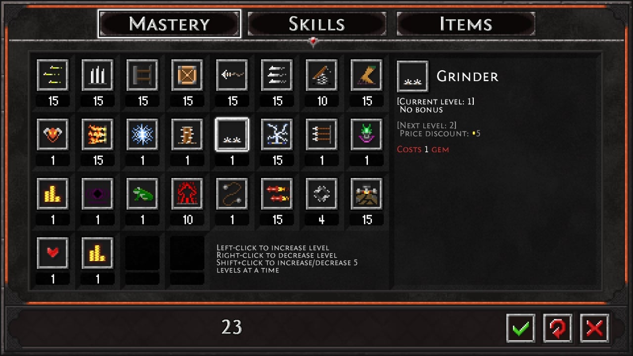 Вас ждет 60 вручную созданных уровней и огромное количество процедурно генерируемых локаций. На определенном этапе предстоит сразиться с боссом. Кампания включает 5 уникальных главарей, битва с которыми заставит по-настоящему попотеть! Прокачивая уровень героя, будут открываться пассивные навыки. Три ветки умений содержат по 11 способностей.