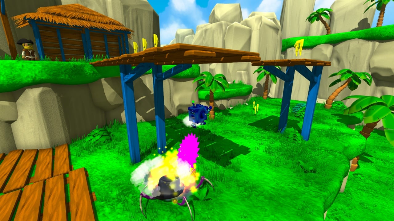Персонаж исследует полуоткрытые зоны, сражается с роботами, уклоняется от ловушек, собирает ноты и гитары, ищет секреты, решает несложные головоломки. Сбор предметов нужен для открытия дополнительных опций и выполнения внутриигровых достижений. По мере прохождения герой получает новые способности, вроде двойного прыжка, отскока от стен, смены формы, починки сломанных объектов. Обретенные навыки позволяют ему попадать в ранее недоступные места, где лежат полезные бонусы. Некоторые скиллы ещё и влияют на саундтрек. На картах можно отыскать дополнительные скины и шляпы для этого комбика. Внешность разрешают менять только между уровнями. Врагов можно уничтожить, если ударить их кулаками или прыгнуть на них.