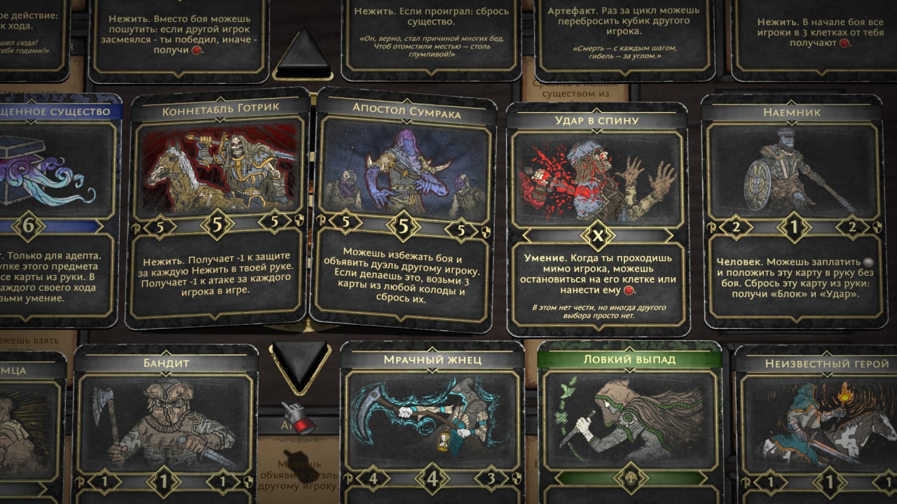 Всего представлено 5 персонажей, каждый из которых обладает собственными умениями. Колода состоит из 200 карт. Проработанная система боя, полная свобода действий и возможность создавать союзы с другими игроками - основа игрового процесса. Разделитесь на команды, чтобы разнообразить партию, либо же выступите каждый сам за себя.