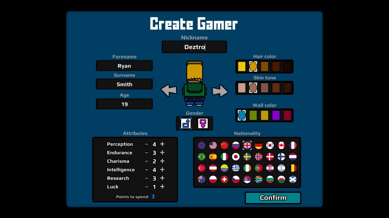 Вы можете развивать персонажа при помощи множества перков и способностей. Создайте профессионального игрока, с минимальными социальными атрибутами, либо же харизматичного и веселого болтуна. Хотите стать тем, что сидит в темном подвале и сутками играет в видеоигры? Вырабатывайте свой стиль игры.