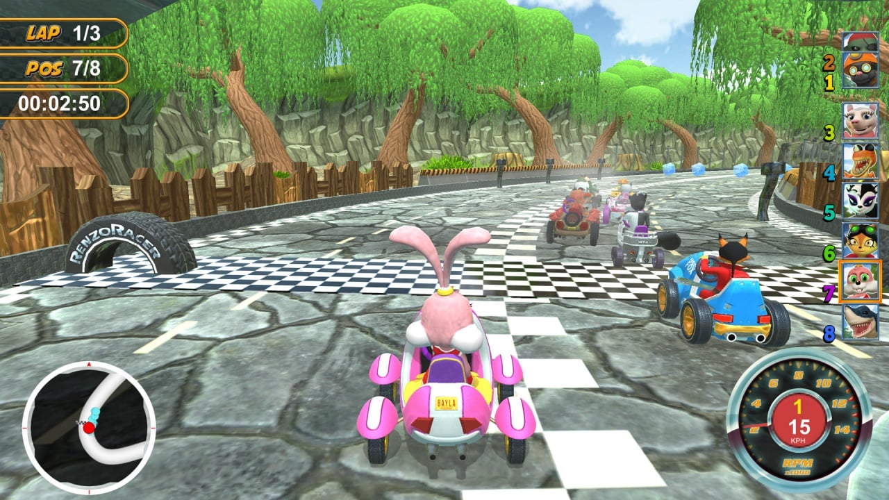 Renzo Racer - яркая и динамичная аркадная гонка, выполненная в мультяшной стилистике, где вы возьмете управление причудливым транспортом, управляемым различными антропоморфными животными. Трассы содержат огромное количество ловушек и препятствий. Цель игры состоит не только в том, чтобы первым приехать к финишу, но значительно замедлить противника и выжить в гонке.
