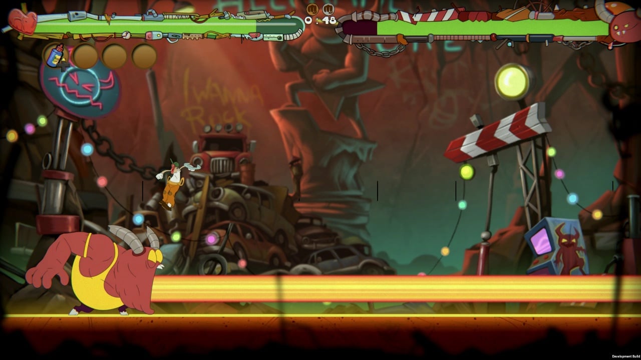 Монстры имеют свойство красть лицо участников шоу, наживую сдирая кожу. Чтобы его вернуть, требуется пройти все испытания, уготованные создателями столь необычной развлекательной программы. На каждом уровне присутствует сложный босс, обладающий индивидуальными паттернами и механиками. В перерывах между битвами можно опрокинуть стаканчик виски в баре, общаясь с мирными героями. За юмором и пестрыми красками скрывается глубокий сюжет, проработанный лор и интересные персонажи. Но какой будет финал шоу - зависит лишь от вас.