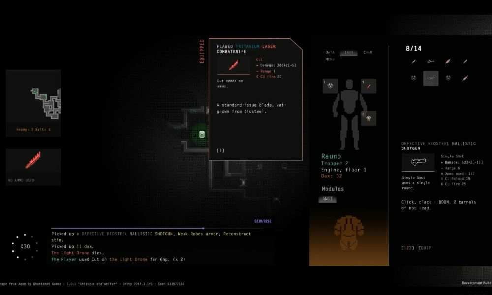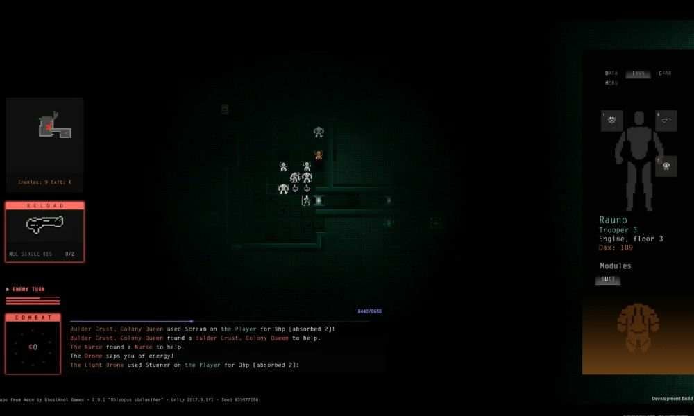 Escape From Aeon - пошаговый хоррор с элементами рогалика в сай-фай сеттинге. В основе игрового процесса лежит возможность менять структуру уровней посредством взрывов. Игра помещает вас в мир постапокалипсиса. Вы находитесь на материнском корабле, который выступает аналогом ковчега, спасшим людей из гибнущей Земли.