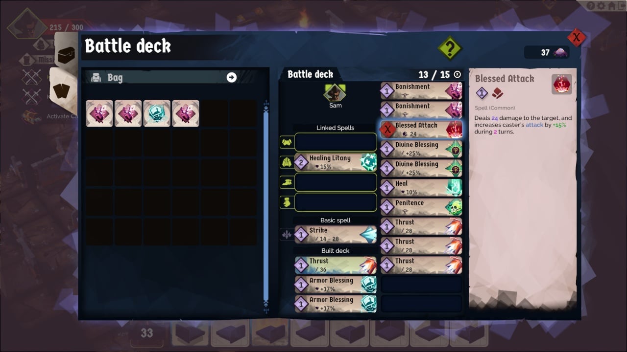 Битвы проходят на специальных аренах, где вы будете сражаться при помощи оружия и заклинаний, написанных на картах. Сложность врагов прогрессирует в зависимости от вашего уровня. На протяжении всей истории к вам будут присоединяться новые герои. При их нахождении уровень бойцов будет равносилен Сэму, а также уровню вашего оружия, снаряжения и экипировки. В коридорах лабиринта вы встретите множество второстепенных персонажей. Кто из них станет союзником, а кто заклятым врагом?