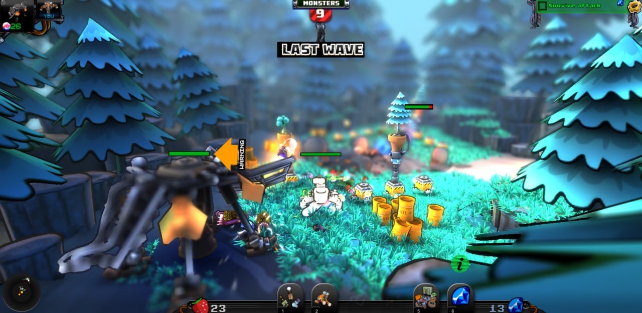 Среди особенностей можно выделить то, что если построить здание возле высокого дерева, то оборонительное сооружение увеличивается в размерах. Противники-слизни также могут использовать особенности ландшафта или растительность, чтобы увеличить свою мощь и здоровье. Врагов в игре достаточно много и все они разнообразны. К примеру, смокеры могут заразить территорию, а луковицы после смерти распадаются на мелкие кусочки, которые продолжают медленно ползти к базе. Побеждая врагов, с них выпадают кристаллы, которые потребуются для улучшений и прокачки.