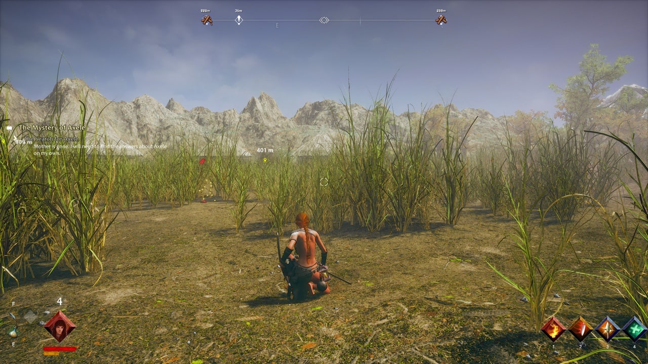 В процессе юзер решает головоломки и участвует в битвах и узнает непредсказуемую игровую историю. За исследования и новые открытия пользователь получает награды. Геймер получает экспу за любые действия, к примеру, за сбор лекарственных растений, открытие новой локации. Здесь можно заручиться поддержкой богов, которые могут давать протагонисту благословения. В ходе боев можно использовать хитрые уловки, позволяющие обходить противников стороной, а также использовать вооружение - топор, лук и спеллы. В игре нет автонацеливания и простого режима битв. В процессе игрок способен собирать и крафтить предметы, необходимые для прохождения. Без крафта персонаж не сможет прокачивать таланты и навыки.