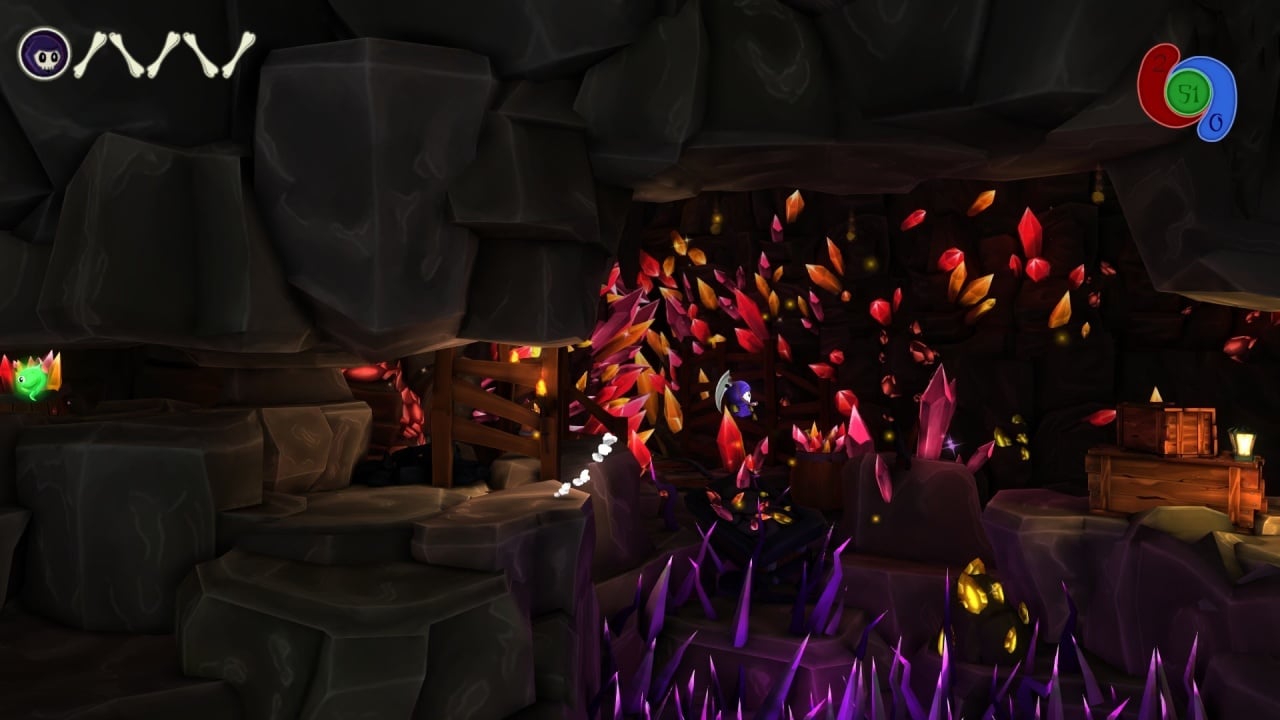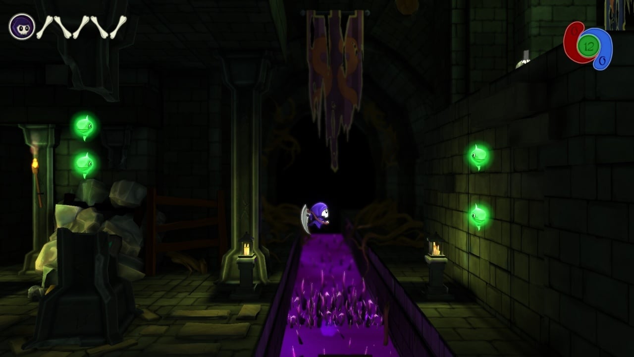 Вы побываете в гробнице, на пляже, в квартире, пещерах и других областях. Подопечный обладает способностями, помогающими забирать на труднодоступные места и сражаться с оппонентами. При помощи телепорта забирайтесь на высокие объекты или прыгайте через пропасти. Убивайте оппонентов косой и магическими заклинаниями. Используйте ягоды как батут, убегайте от падающих камней с шипами по пещерам, открывайте сундуки и подбирайте бонусы, разбросанные на каждом уровне. Зеленые светлячки укажут дорогу, чтобы остановить нашествие душ.