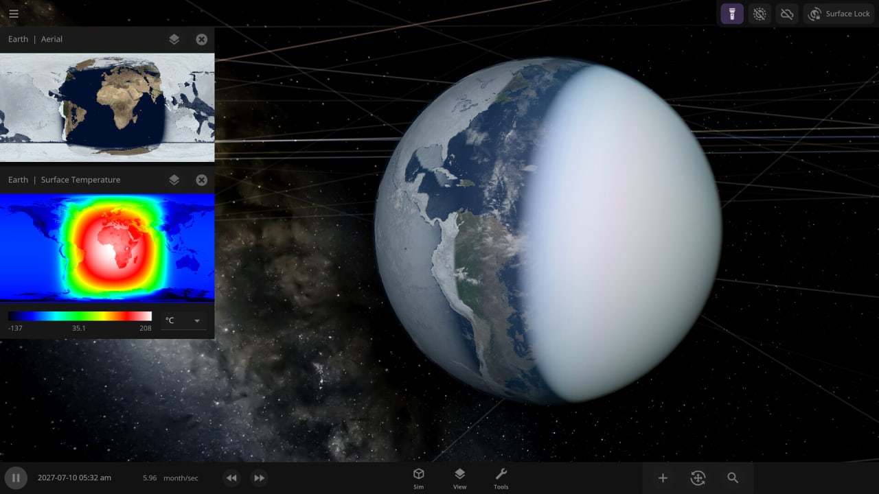 - моделировать климат Земли: наблюдать из космоса, как меняется климат на планете в зависимости от времен года, либо как протекает жизнь на Земле, если перемещать ее на различные дистанции от Солнца;