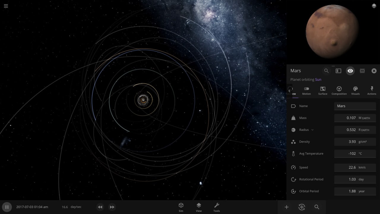 - создать свою солнечную систему: разместить звезду, добавить планеты, обогатить космическое пространство спутниками, кометами, кольцами и даже черными дырами;