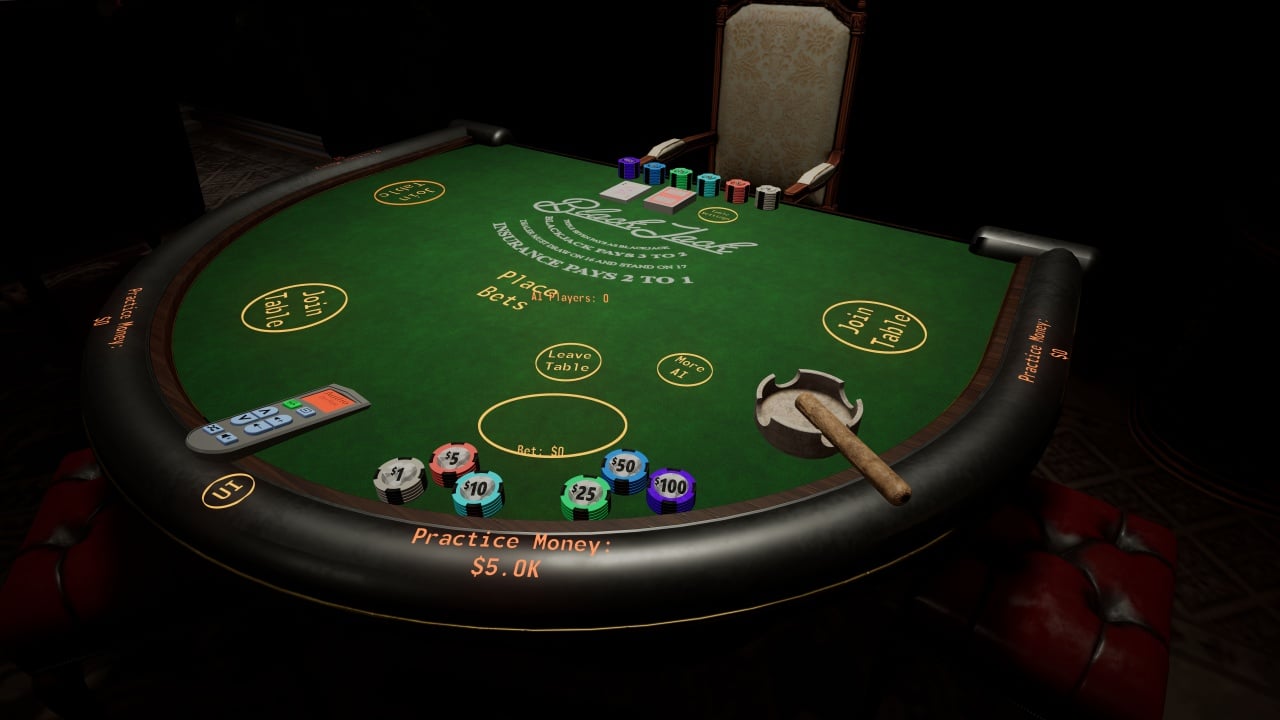 В игре Social Club VR: Casino Nights вы попадаете в элитное казино, где делают только высокие ставки и не приветствуют слабаков. Здесь можно выбрать одну из нескольких азартных игр: блэкджек, техасский холдем, покер и рулетку. Можно играть как в одиночку, так и вместе с друзьями. Перед началом позволяется кастомизировать аватара: задайте ему параметры внешности, выберите одежду, наденьте шляпу или шарф. Также можно выбрать фоновую музыку, которая звучит в баре.