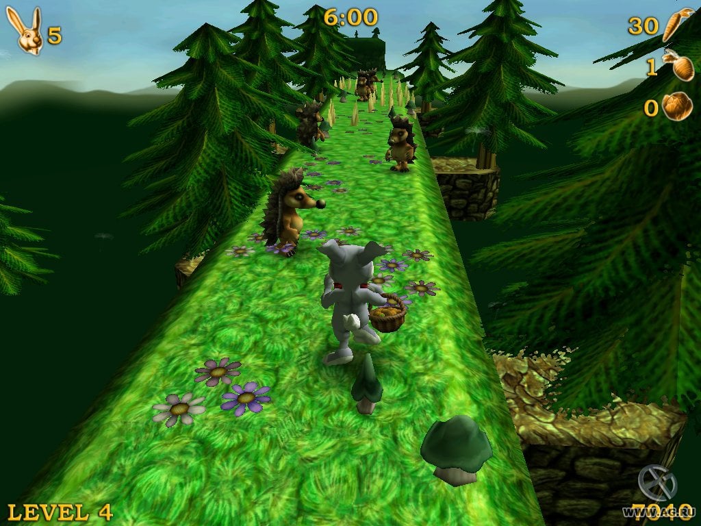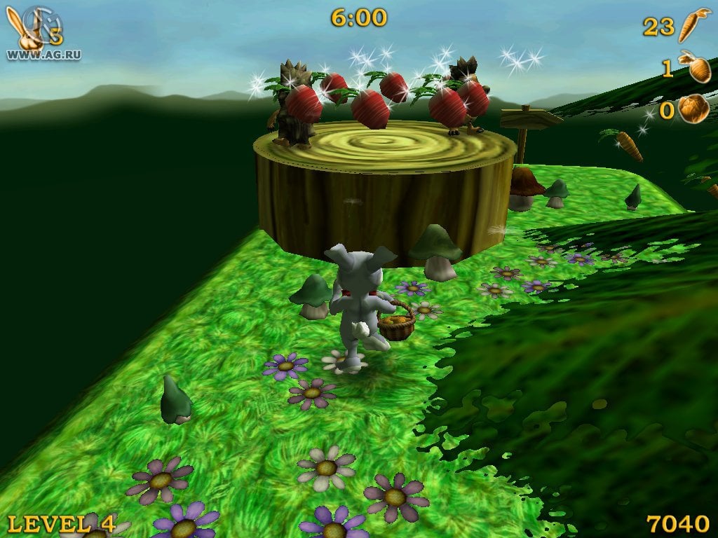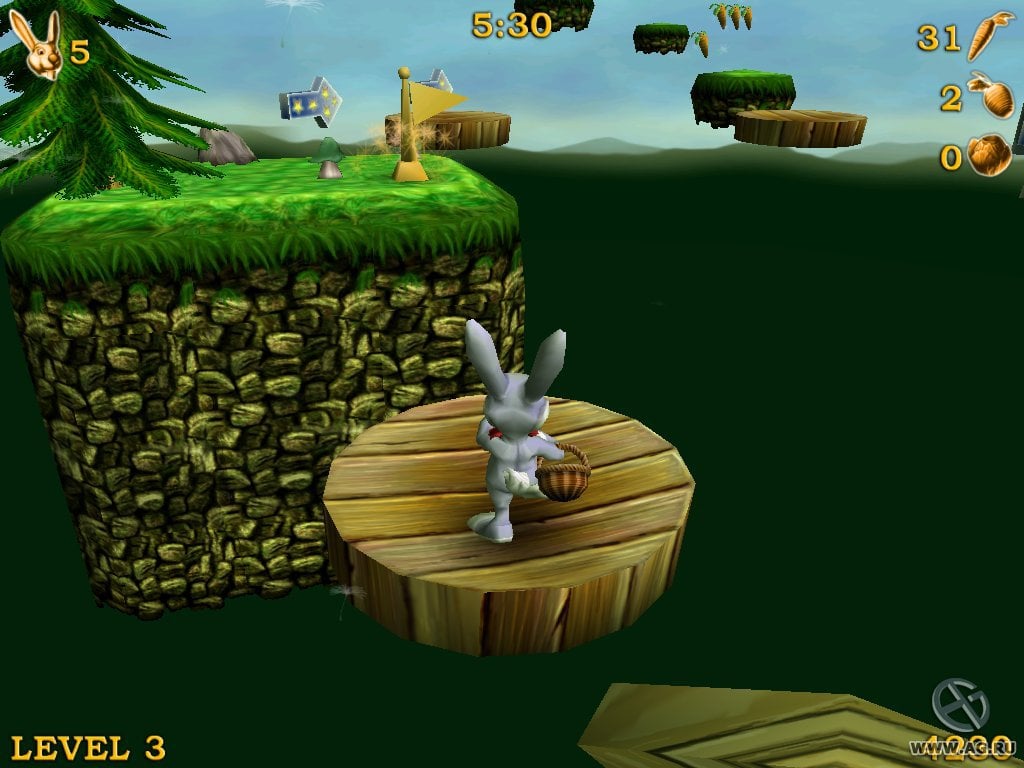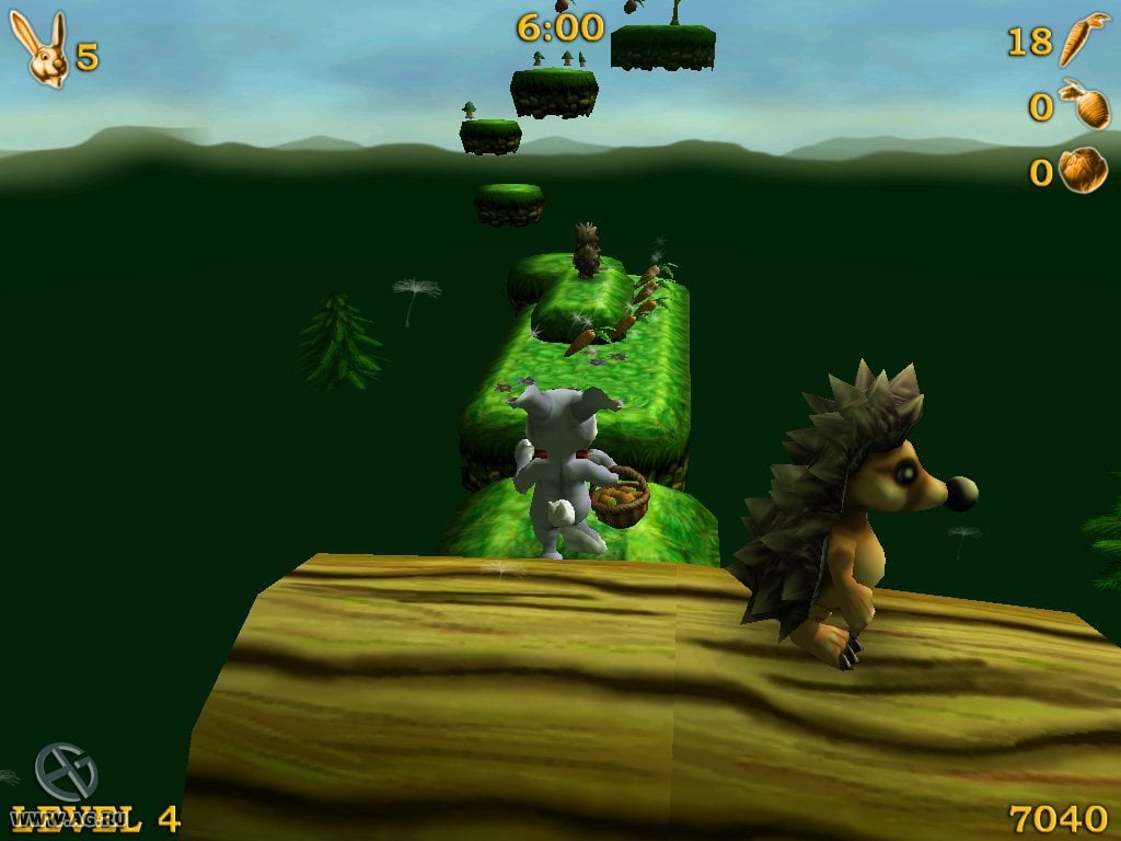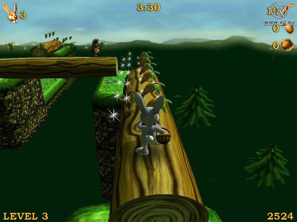 Доступны двойные прыжки при повторном нажатии кнопки действия. Все уровни - линейны, но иногда предлагают несколько путей, один из которых будет более сложный, в то время, как второй предложит облегченный вариант прохождения. Разница состоит в том, что на сложных развилках игрок получит дополнительные бонусы. На уровнях представлено множество препятствий: шипы, торчащие из земли, движущиеся платформы и таймер. Каждый левел имеет ограниченное количество времени, за который нужно его успешно завершить. Сражаться необходимо с гигантскими морковками, птицами, ежиками, пасхальными яйцами и т.д. Бонусы представлены в виде моркови, капусты и свеклы. Если собрать 50, 30 и 10 штук, то герой получит дополнительную жизнь. Для хардкорных игроков предоставлен повышенный уровень сложности.