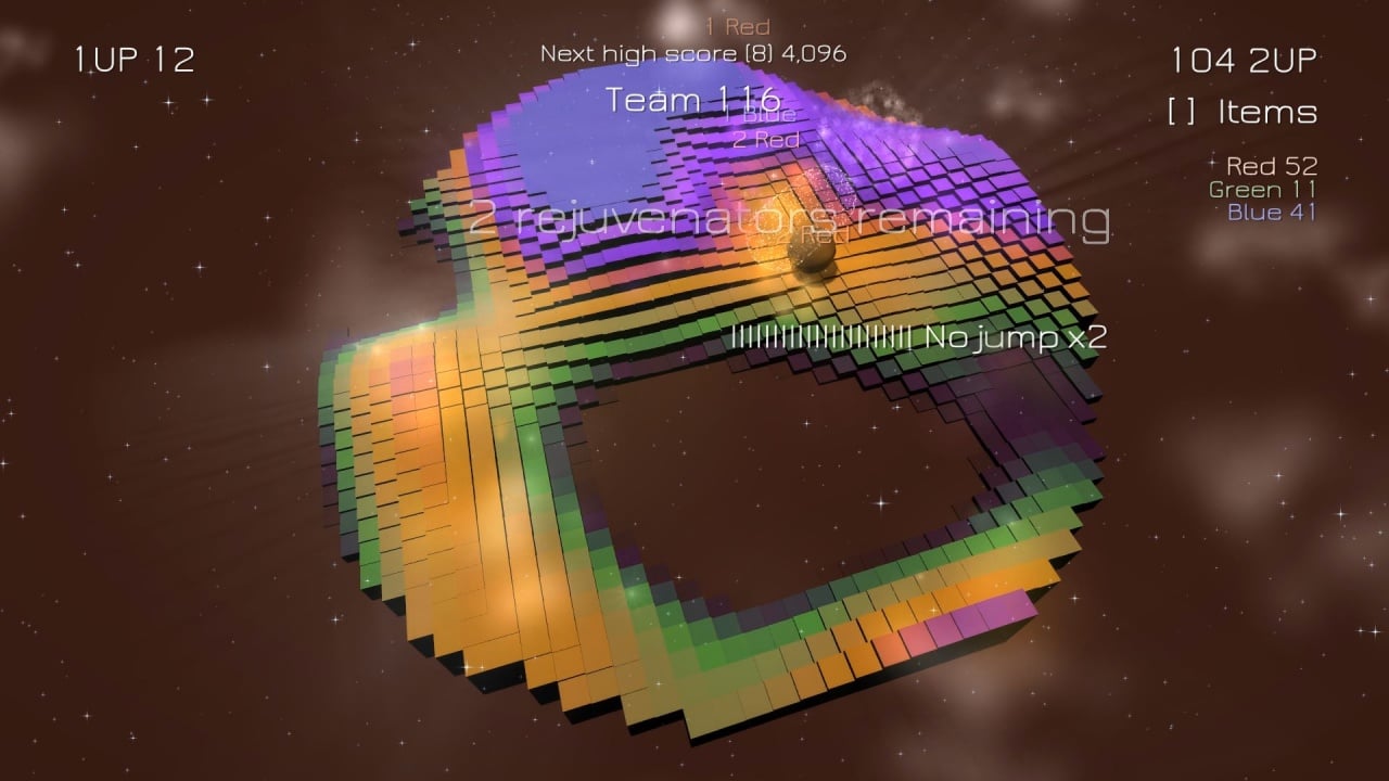 Сфера умеет передвигаться в каком угодно направлении (с учетом гравитации), скатываться и прыгать. С неба периодически падают предметы, которые увеличивают и уменьшают шарик (тем самым влияя на скорость движения), меняют окрас карты, временно отключают способность совершать прыжки, создают дополнительные проломы или, наоборот, выравнивают поверхность. Очки тут начисляют за проезд по новым кубикам красного, синего и зеленого цвета, а также за трюки, вроде маневрирования у края пропасти.