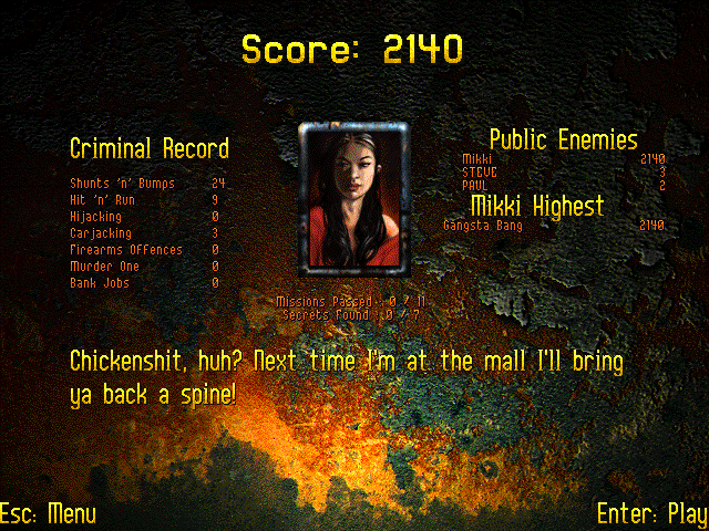В первой части знаменитой Grand Theft Auto 1 игроку предстоит взять на себя роль преступника и исследовать открытый мир, где можно угонять машины, выполнять различные задания и убивать людей по заказу. Город разделен на уровни. Чтобы открыть новый уровень, требуется набрать определенное количество очков. Всего у героя пять жизней.