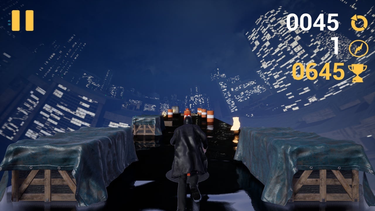 CityRunner - аркада с элементами платформера в сеттинге киберпанка. Игровой процесс строится на постоянном движении вперед, где необходимо преодолевать препятствия и собирать различные бонусы. CityRunner предлагает установить личный рекорд по преодолению ловушек и выживать в суровом мире будущего как можно больше времени.
