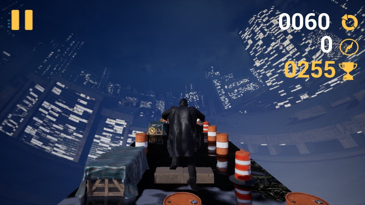 Чем дольше игрок сможет продержаться на полосе препятствия, тем сложнее и быстрее будет становиться геймплей, подкидывая на полосу препятствия множество ловушек. Препятствия могут включать в себя обычные шлакобетонные блоки, ящики, выстроенные в баррикады или бочки с горючим. Чтобы их преодолеть достаточно просто перепрыгнуть. При контакте с одним из элементов арены, герой моментально умирает.