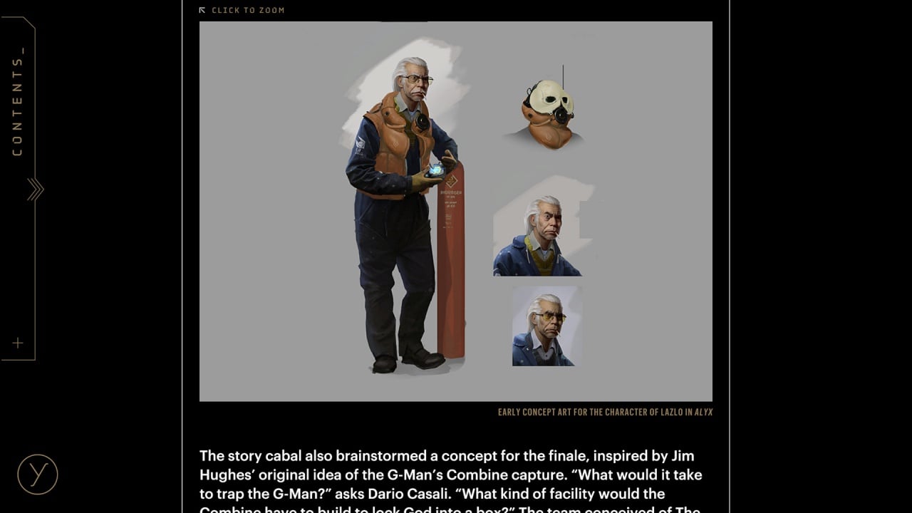 Ещё здесь можно посидеть в звуковом редакторе и создать собственный звук для хэдкраба. Также есть возможность рассмотреть с разных ракурсов трехмерные модели и поизучать концепт-арты. Помимо этого было добавлено интервью с разработчиками. Для ознакомления с перечисленным выше содержимым шлем виртуальной реальности не нужен.