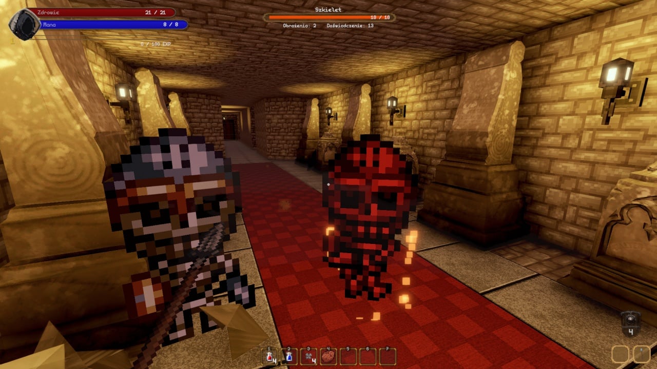 Противники также способны наносить урон с ближнего и дальнего расстояния. В процессе персонаж занимается исследованием уровней подземелья в поисках полезных предметов, например, оружия. Пройдя один этаж, надо найти люк в полу, чтобы проникнуть на следующий. В финале героя ждет сражение с боссом, который отличается повышенными характеристиками. В случае поражения, прохождение не нужно начинать заново - игровой прогресс можно сохранить на любом левеле.