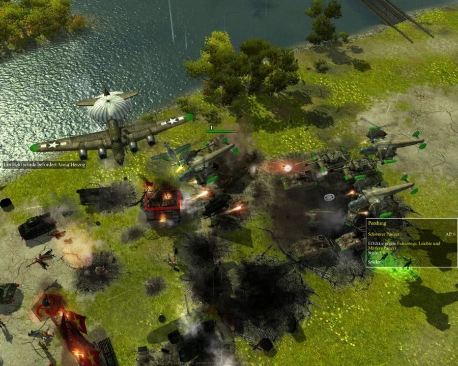 - СССР - многочисленные войска с пехотинцами, способными использовать коктейли Молотова, повышать боевой дух товарищей водкой. Танки и ВВС более слабые, но союз имеет на вооружении Гигантскую Турель, модифицированный пятибашенный Т-35 Харьков, может вызывать в качестве подмоги партизан. В качестве супероружия на борту ТБ-3 есть ледяная бомба. Персонажи: Алексей Михалков, владеющий пулеметом ДШК, Надя Аманова, со способностью метать ножи, Андрей Назаров - генерал с винтовкой Мосина.