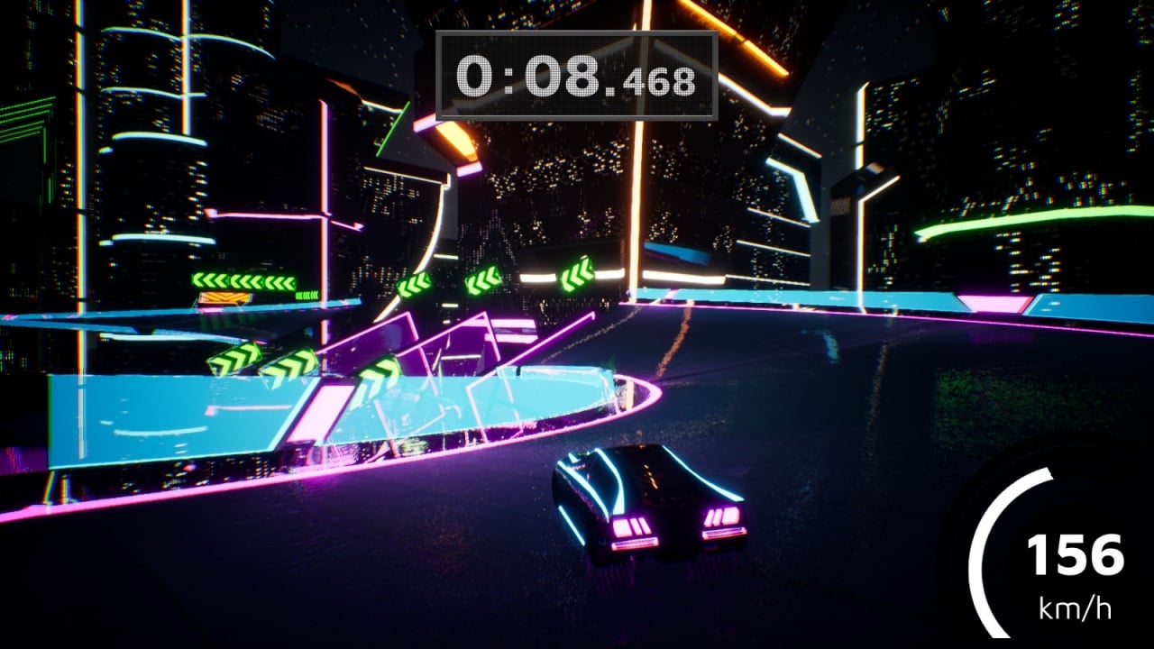 Burnt Rubber – футуристическая гонка, имеющая свыше 50 треков. Водителя окружает ночной город, среди которого ярко выделяются неоновые полосы дорог и машины. Маршруты часто прерываются мертвыми петлями и резкими поворотами, а еще обладают множеством препятствий – от столбов до движущихся платформ и обручей. Последние меняют гравитацию, позволяя исполнять головокружительные кульбиты в воздухе.