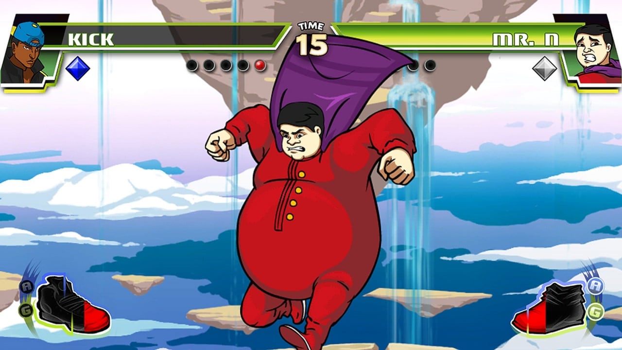 Каждый герой имеет свой отличительный удар, скорость, высоту прыжка и угол, под которым наносится урон. В процессе предстоит двигаться, уклоняться и атаковать. Шкала уклонения Kick Meter заполняется и может быть израсходована специальные атаки - на земле и в воздухе. Перед боем геймер выбирает один из 4-х камней, имеющий некий эффект - ускорение атаки, усиление Kick Meter. Здесь используется Hold the Line - механика, снижающая вероятность ничьих.
