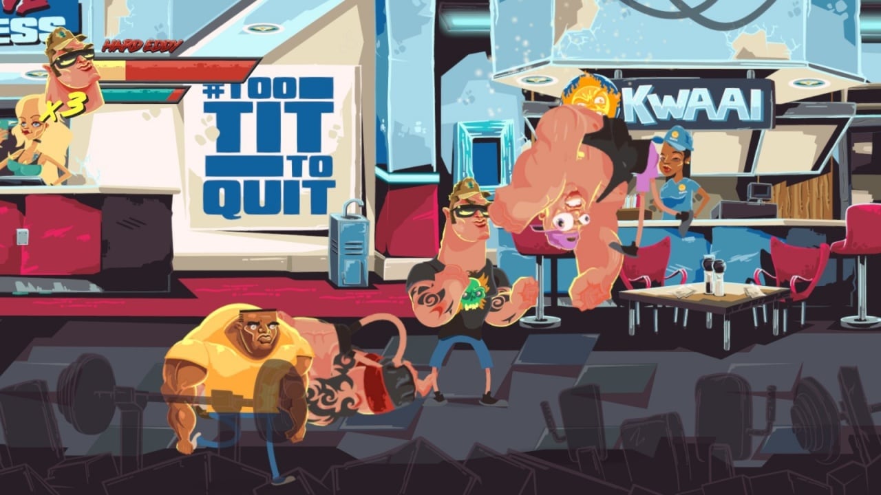 Игровой процесс целиком и полностью состоит из насилия и нанесения ударов в правильные тайминги, это необходимо для того, чтобы не словить контратаку. Стереотипные качки мало что понимают в самоиронии, из-за чего многие на уровнях будут биты и по несколько раз. Сюжетные заставки выполнены в ярком стиле комиксов и нужны для объяснения предыстории каждого эпизода, происходящих в разных локациях с абсолютно отличающимися задними фонами: бары, спортзалы, бильярдные, тесная улочка, стадион, где установлена клетка для боёв без правил и многие другие территории повстречаются во время прохождения.
