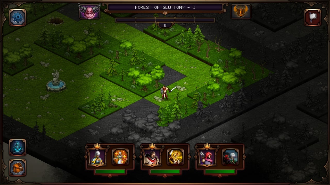 Геймплейные возможности Sin Slayers: The First Sin расширяются по мере прохождения. Чтобы получить возможность крафтить, нужно сначала выполнить задание по поиску кузнеца, например. Создавать можно различную экипировку и камни для прокачки умений. После всех приготовлений отряд выбирается на вылазку. Здесь 7 основных и разнообразных локаций: кладбище, лес и т. д. В каждой надо победить Синлорда, символизирующего один из смертных грехов.