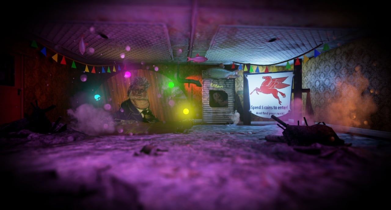 Главная особенность Дом отдыха – графика, созданная на движке Unreal Engine 4. Разработчик добился красивых визуальных эффектов и качественных текстур. Здесь видны частицы, парящие в воздухе, огоньки и туман. Благодаря игре света создается уникальная атмосфера мира сновидений. В роли подсказок выступает текст, начертанный на стенах или парящий прямо в воздухе.