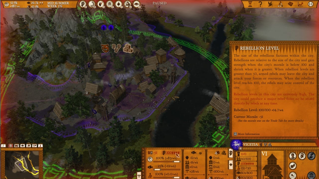 Создавайте собственные ветви ферм и линии снабжения провизией. Еда необходима, чтобы поддерживать дух армии. Помимо выращивания продовольствия, можно захватывать вражеские контрольные точки, заставлять их работать на себя, либо грабить. Совершая набеги и устраняя важные точки противника, вы ослабите его защиту и желание воевать.