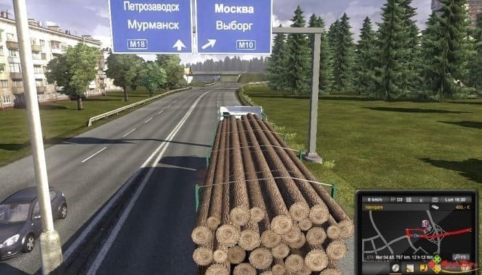 Скорость передвижения каждый выбирает индивидуально. Все зависит от типа дороги и погодных условий. Игровой процесс включает пробный режим, где можно попробовать поуправлять грузовиком без прицепа. Модификация содержит такие русские города, как Выборг, Петербург, Медвежьегорск, Петрозаводск, Беломорск, Кандалакша, Мончегорск, Мурманск и много других.
