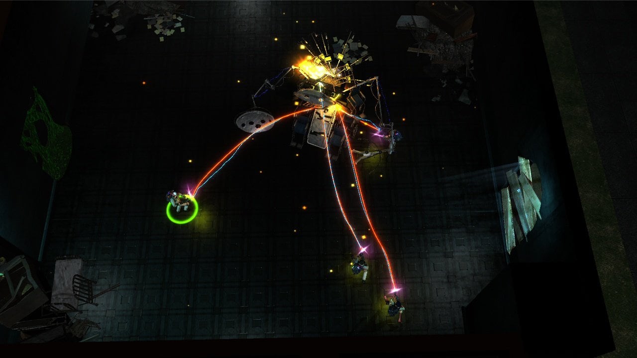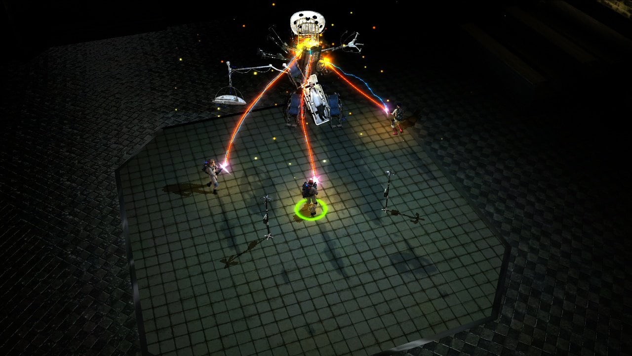 Используя богатое вооружение "Охотников" для истребления врагов, необходимо пробиться к концу локации для сражения с боссом. Они имеют огромный запас очков здоровья и убить их возможность только слаженной командной работой. Помимо классических протонных пушек, есть оружие, стреляющее электронными импульсами и специальными шарообразными снарядами, рикошетящими от стен. Взаимодействие между членами отряда важно для преодоления трудностей и помощи раненным союзникам. Чтобы вылечить упавшего протагониста, другой герой должен пробиться к нему и нажать клавишу действия.