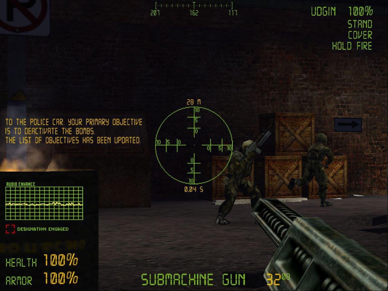 Враги ведут себя реалистично, правильно двигаются, могут стрелять в любом положении и даже способны преследовать протагониста. Баталии в основном осуществляются на открытой местности. Есть сражения в коридорах, лабораториях и на складах баз и исследовательских центров. Пораженные недруги ведут себя адекватно, при попадании в голову они умирают, а при ранении - в соответствии с ситуацией. Например, при попадании в ногу, противник будет хромать.