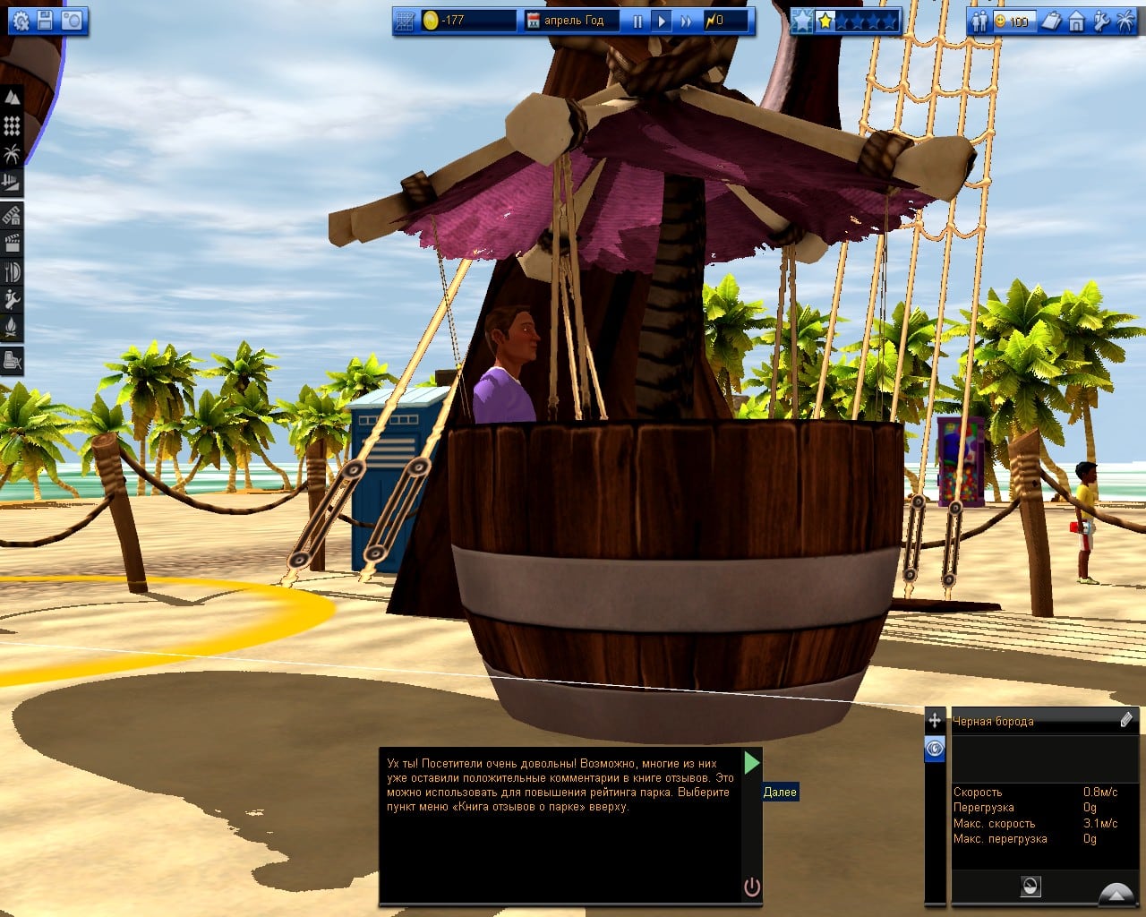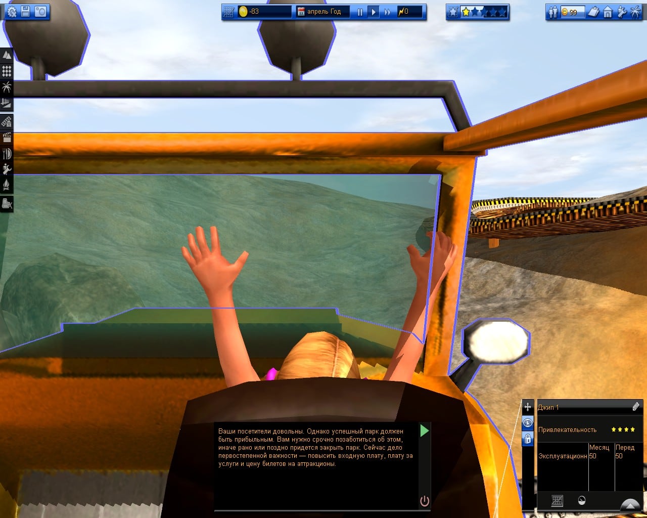 В игре предусмотренны инструменты, позволяющие создать аттракционы на любой вкус. Здесь все зависти от фантазии. О потребностях людей тоже не стоит забывать. Слишком крутые горки, большие подъемы, неинтересный или опасный вид - и вас не останется клиентов. Классические качели и карусели - это оптимальный вариант, который всегда работает.