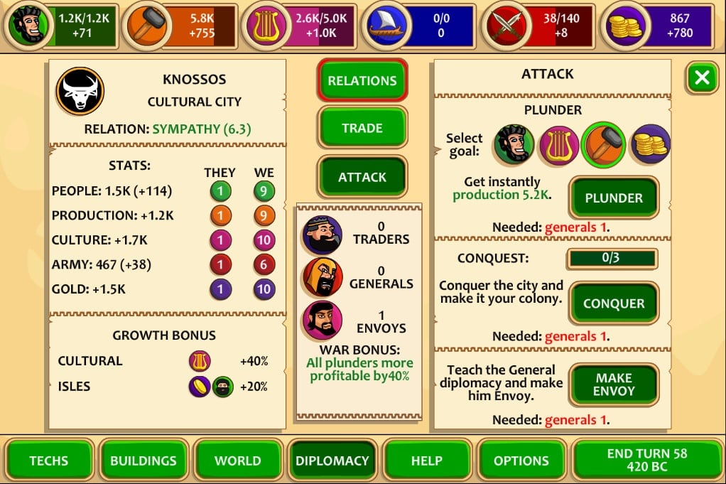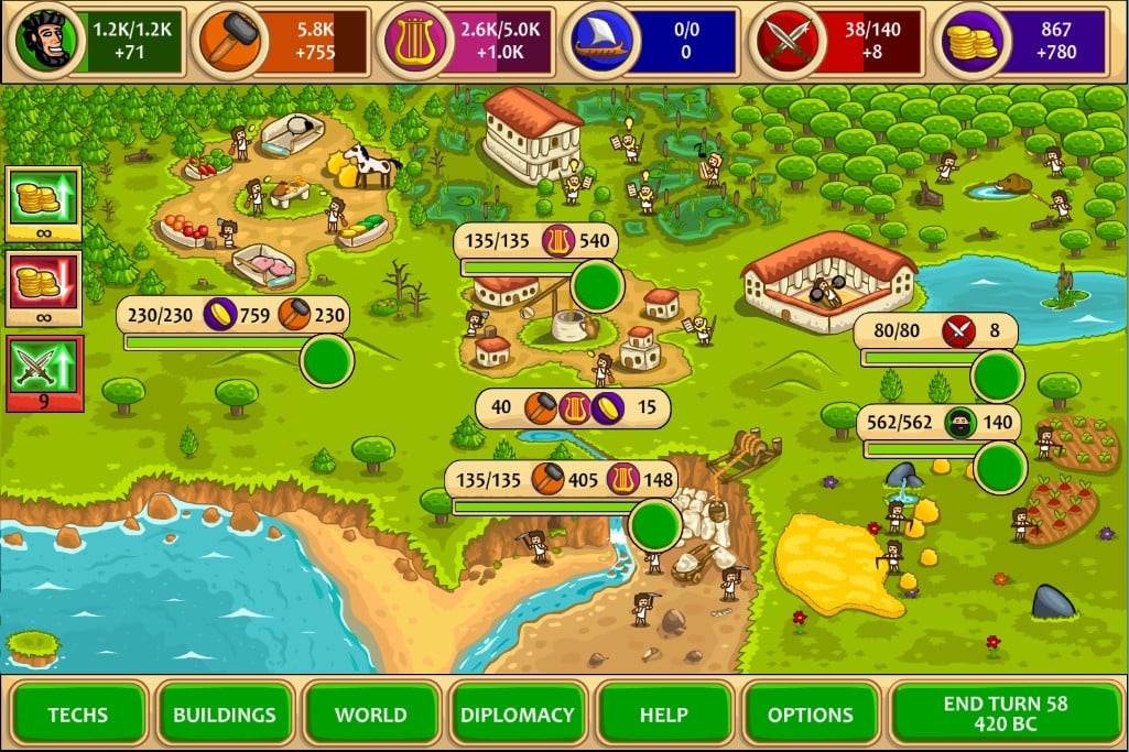 Со временем землю в Pre-Civilization Marble Age придется расширять и обогащать чем-то новым. Когда вы придете к перспективному правлению, и будете получать заветные плоды от разных отраслей, появятся завистники. Недружелюбные соседи попытаются ограбить вас и забрать все, что можно унести. Поэтому запаситесь терпением и сделайте все, чтобы варвары хорошенько поплатились и пожалели, что ступили на вашу землю. Выполняя различные задания, протагонист будет получать бонусы, благодаря которым можно пополнять боевые припасы или что-то улучшать. Наблюдая за историческими событиями можно образовываться и узнавать много нового, с чем действительно в древние времена сталкивались люди.