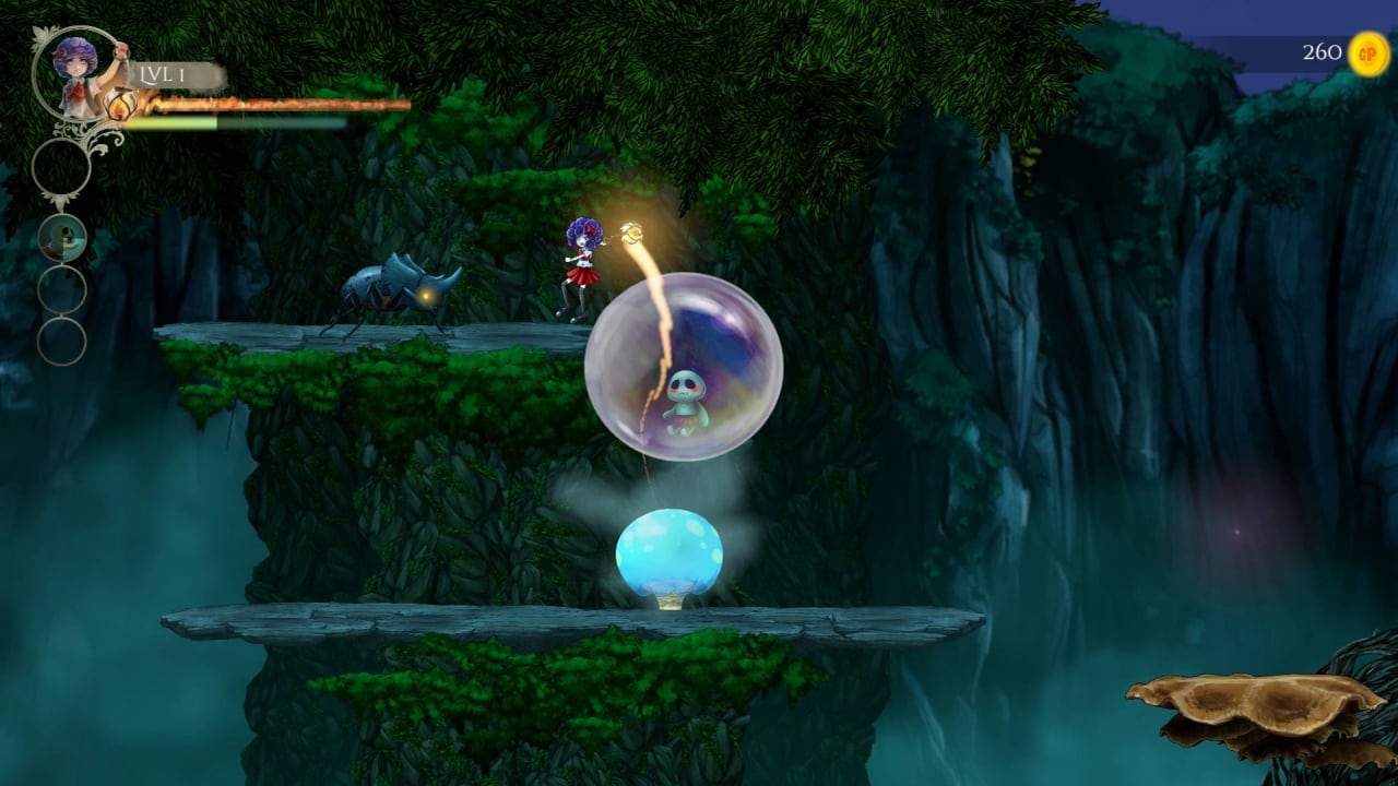 Основное оружие - фонарь, который называется Лантера. Его выдает таинственная женщина, вручающая артефакт со словами: он освещает путь и защищает от опасностей. Сохраняться можно только в специальных точках, представленные фонарными столбами. Чтобы не заблудиться, девочка носит с собой карту, в которую можно подсмотреть в любое время. В лесных деревушках будут встречаться различные мини-игры: рыбалка, управление магазином, готовка зелий и много другой сторонней активности.