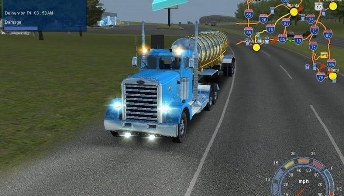 Действия разворачиваются в Америке, а на карте имеются все большие города США. Также присутствует и часть Канады с Мексикой. Здесь можно выбрать 1 из 3 режимов. Играйте, будучи наемным или свободным водителем, либо станьте владельцем компании. На старте геймплея открыт только режим наемного водителя, где главному герою выдадут определенную машину. Ее потребуется улучшать, чинить и выполнять заказы, являющиеся не самыми оптимальными заказами по цене и длительности езды.