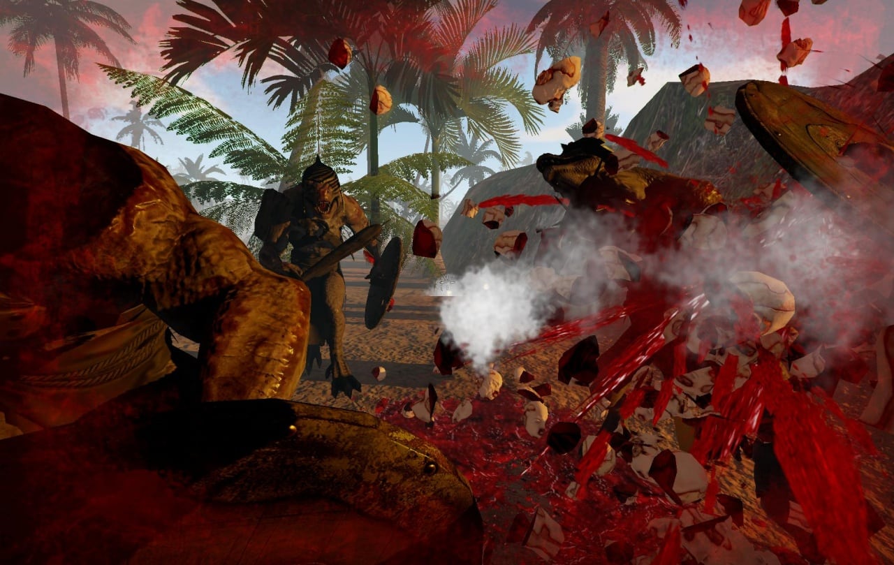 Dinosaur Hunt First Blood - продолжение одноименной игры. Геймплей представляет шутер от первого лица, где игрок вооружается тяжелым оружием и идет сражаться с динозаврами и монстрами, представляющие собой смесь ящеров и людей.