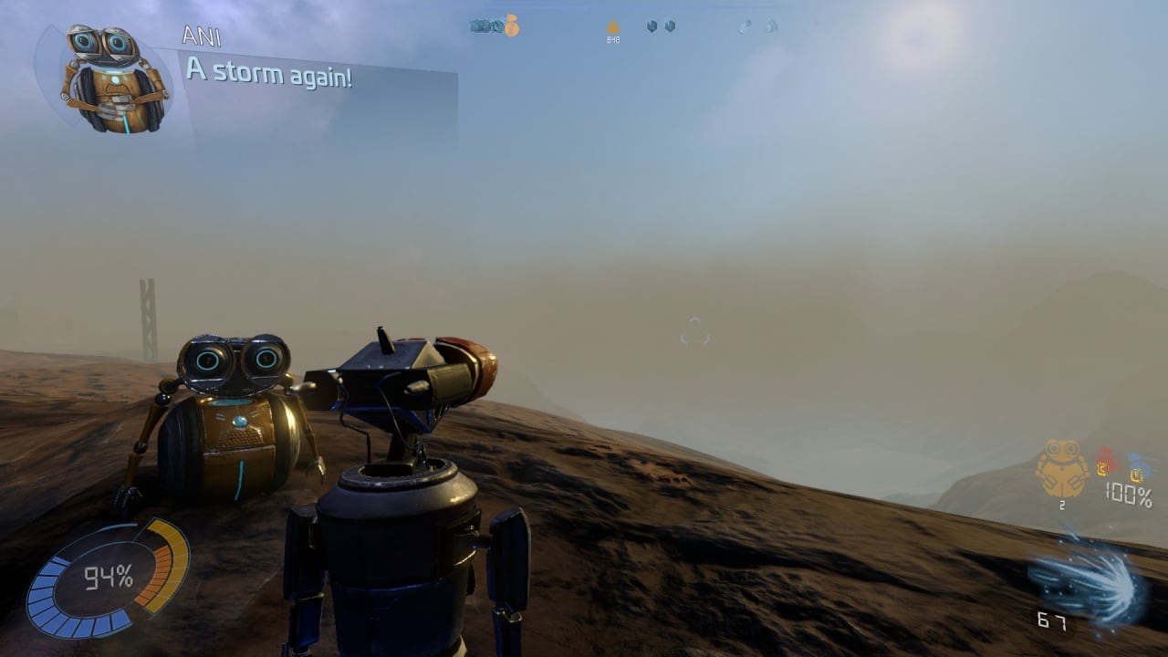 Космолёт, на котором летел главный герой, был отправлен с роботического мира, где уже давно очистили атмосферу от загрязнения и органических существ. А вот эта планета, где потерпели крушение, как раз-таки переполнена жизнью и имеет богатую природу и фауну. Нужно заново изучать такое строение бытия и приспосабливаться к новым условиям, порой агрессивным. Изучая мир, игрок найдёт ещё одно разрушенное космическое судно и найдет там робота-девушку по имени АНИ. Она очень болтлива и не может передвигаться, поэтому будет выдавать вам задания и помогать как сможет. Ей нужно укрытие от дождя и песчаной бури, пища и материалы для починки себя и корабля, чтобы покинуть эту систему, такова конечная цель прохождения.
