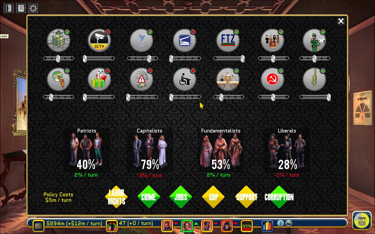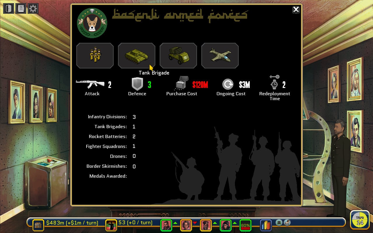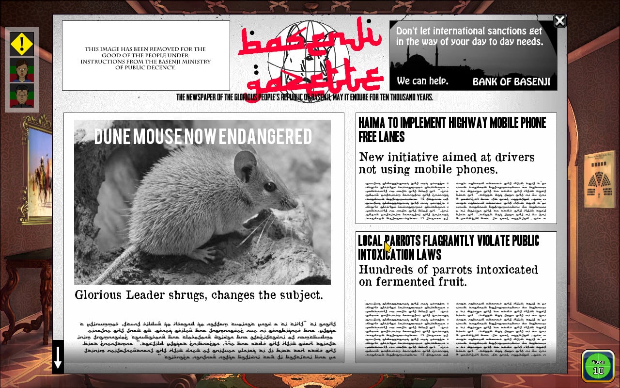 Коррумпированная монархия Республики Басенджи довела народ до революции, которую Вы возглавили! Теперь игроку предстоит взять власть в свои руки, поддерживая баланс между интересами капиталистов, фундаменталистов, либералов и патриотов. Взаимоотношения с соседними странами, заключение союзов, развитие своей экономики, удовлетворение потребностей своего населения и многое другое. Однако помните, что ваш брат Фарук намерен свергнуть вас путем интриг и заговоров.