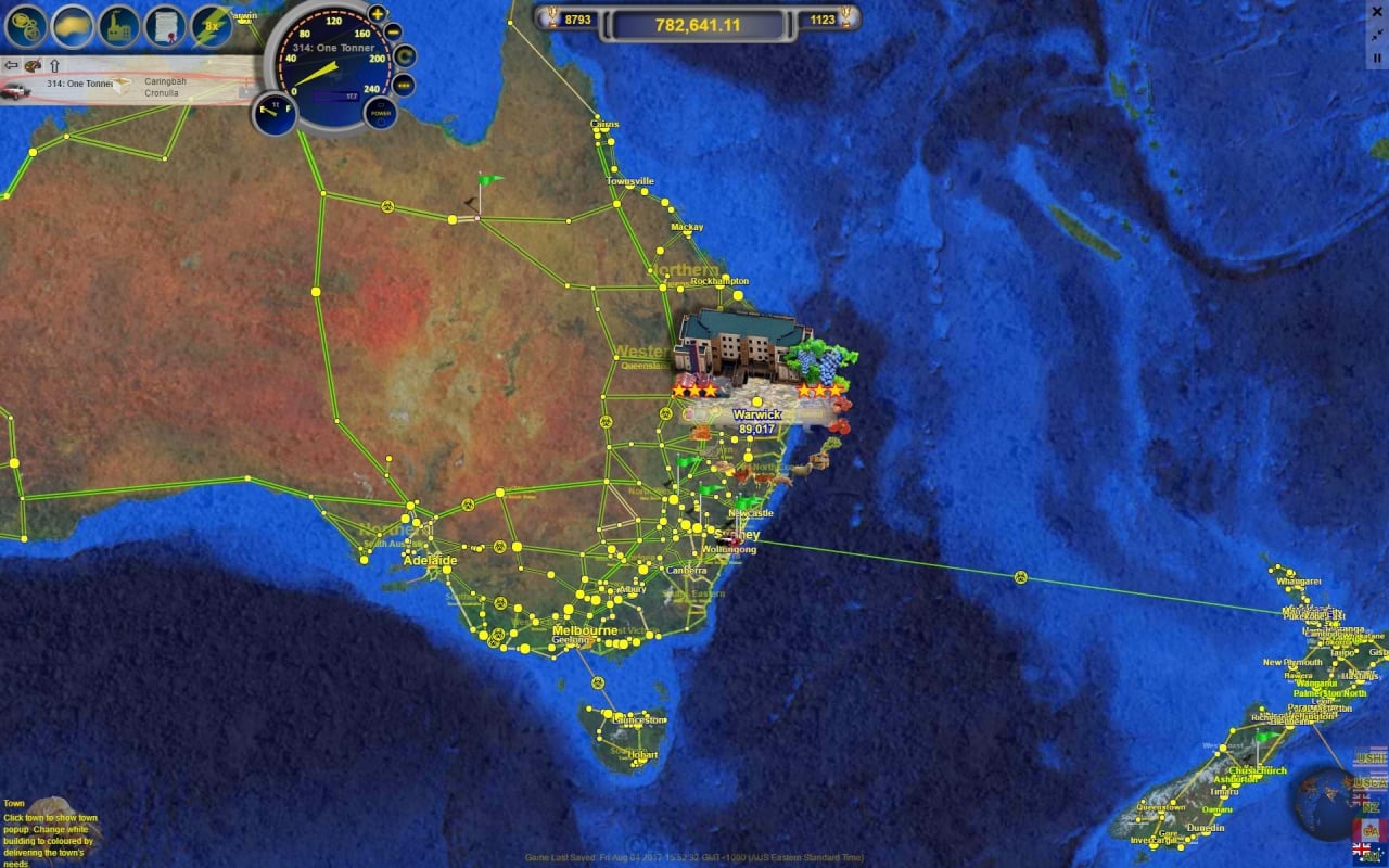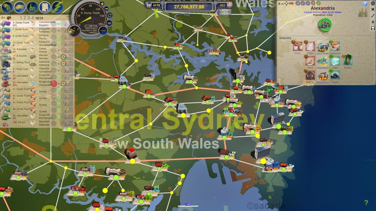 Главное, чем мы будем заниматься это транспортные поставки, обеспечивать нужно целые города и регионы. Начав с одного городка, охватите своей транспортной сетью целую Австралию, которая включает в себя более 1000 городов и поселков. Игра подразделена на несколько фаз, в начале каждой вам станет известно кто и в каких видах товаров сегодня нуждается. Во второй фазе, вы не просто должны поставить дефицитный товар, но и найти его на складах и производствах, а если товара там нет, то небольшое на первый взгляд задание превращается в целую эпопею.