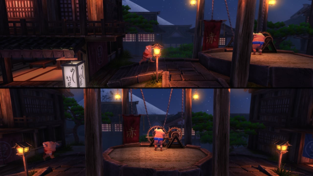 Игроку предстоит решать разнообразные физические головоломки, но необходимо будет помнить об этой особенности персонажа - при любом неверном шаге он упадет. На всех уровнях вы можете встретить различные роллы, съев которые, можно повысить свой ранг как сумоиста.