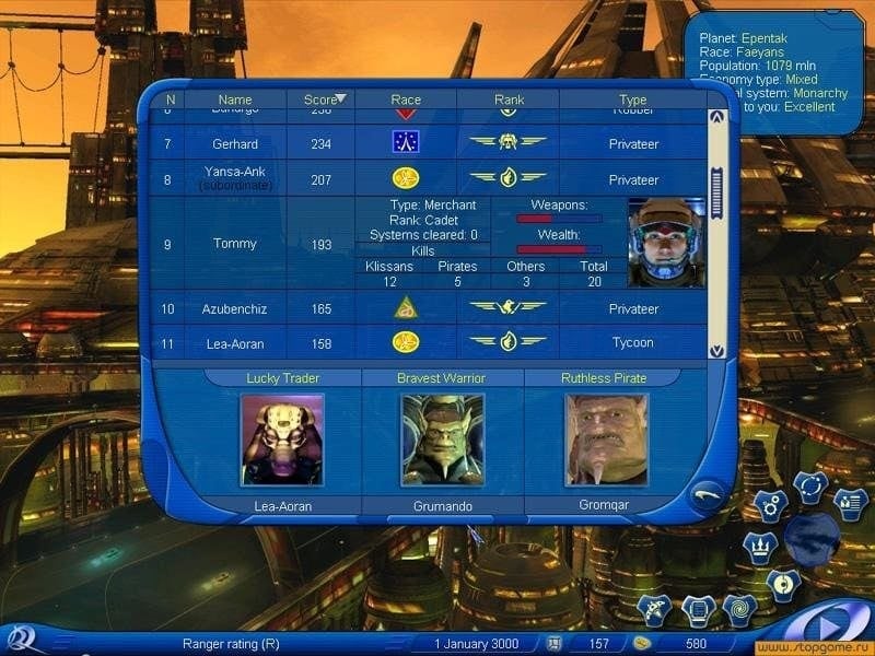 Космические рейнджеры – игра для персональных компьютеров с элементами различных жанров. Наш игрок – это рейнджер в составе специально созданного подразделения для борьбы с неизвестным, агрессивным захватчиком. По сюжету Space Rangers враждебная нация – клисаны вторглись в объединение из 5 Республик с целью освободить космические корабли от существ внутри. Клисаны думают, что корабли - живые существа, а экипаж в них – вредоносные, которых необходимо уничтожить для поддержания жизнеспособности живого организма. Игрок – рейнджер может заниматься различной деятельностью.