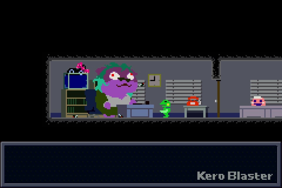 В Kero Blaster вы возьмете управление над лягушкой, работающей в компании Cat and Frog. Данная организация специализируется на разработке телепортов. Вам предстоит перемещаться в оригинальные миры при помощи телепортации, чтобы сражаться со странными черными монстрами, способными ворваться в ваш мир. В процессе представлено линейное прохождение уровней.