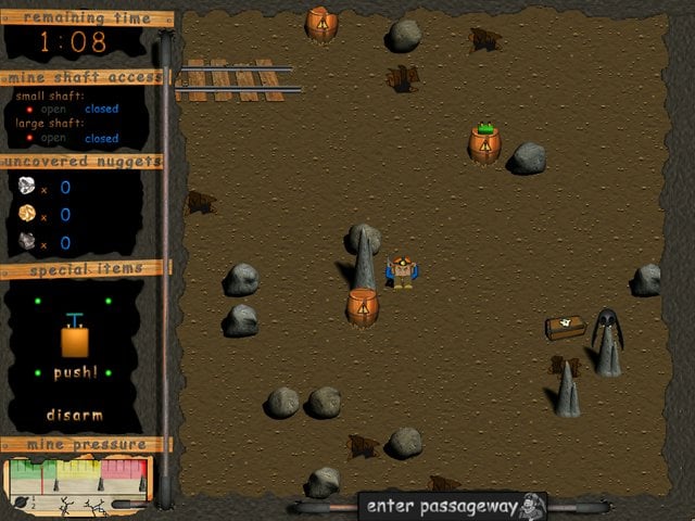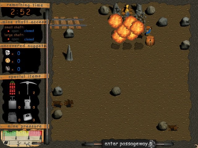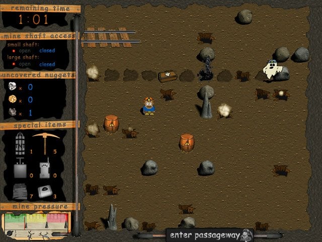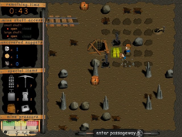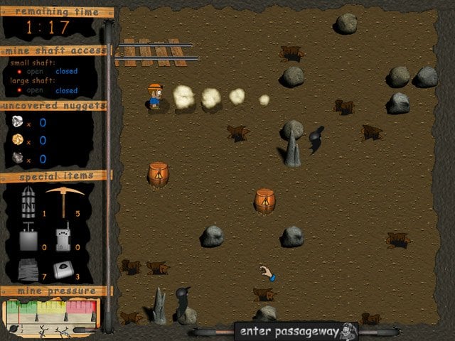 Пахом, будучи одним в темноте, должен преодолеть кипящие водяные и нефтяные гейзеры, выбивающиеся прямо из поверхности сталагмитами. Особую опасность составляют духи погибших работяг. В Miner Madness есть безумные кроты-мутанты, которые явно недовольные присутствием человеческих душ, днем и ночью стучащих по стенам. Пробивайте свой тернистый путь к свету, копая землю и взрывая стены. Ну и не забывайте про главную цель протагониста!