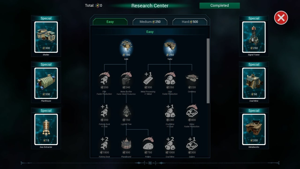 Еда и вода играют ключевую роль в жизни поселенцев. Перед засухой и морозами важно запастись всей необходимой провизией. Огромное количество полезных ресурсов можно отыскать в заброшенных районах. Левел жителей повышается, как и уровень счастья, образования, производительности и других параметров. При переходе на новый уровень открываются дополнительные возможности. Мертвые растения и деревья можно оживлять при помощи специальных препаратов.