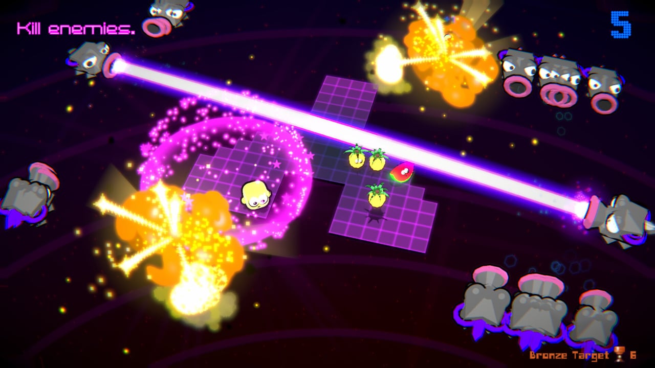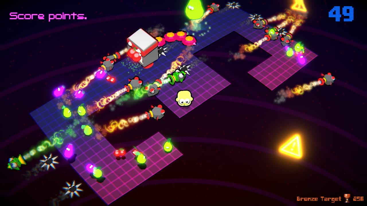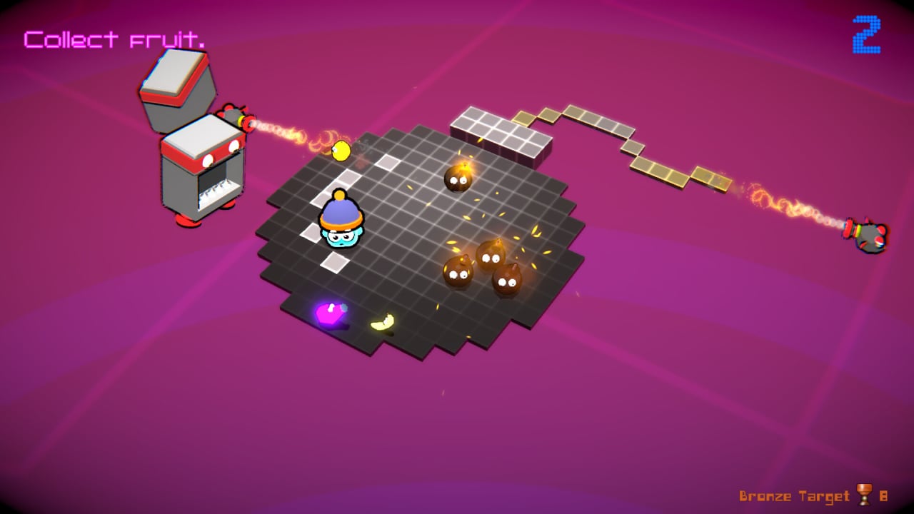 3D Don't Die Mr Robot - это стремительная аркада, в которой геймеры управляют маленьким роботом в хаотичном мире, освещенном неоновым светом, известном как измерение Neon Dunjun. Задача на первый взгляд проста: выжить, собирая взрывоопасные фрукты, которые помогают уничтожать врагов. Однако, как это часто бывает в подобных играх, по мере прохождения уровней все усложняется. Тайтл предлагает множество режимов, каждый из которых имеет свой собственный набор задач и целей. Будь то режим Remix, в котором вы решаете пользовательские задачи, или же стремитесь набрать максимальное количество очков в режиме Arcade, действие не ослабевает.